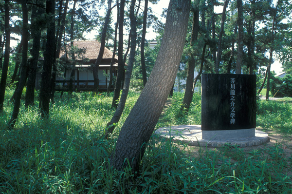 一宮館では、龍之介の滞在以来、その離れを芥川荘と名づけ、大切に守りつづけてきましたが、平成3年、龍之介の生誕・数えで百年、また恋文が書かれてから75年を閲み、芥川瑠璃子様をはじめ芥川家の皆様方の快いご了解をいただき、芥川荘を包む松林の一隅に、恋文全文を刻した文学碑を建立しました。